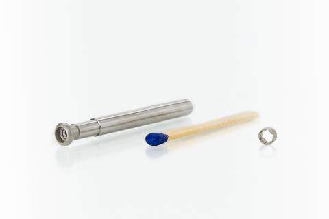 Diese Lehre wird zur Prüfung eines Sechskantes mit Schlüsselweite 2,5 mm verwendet. Der Sechskant ist in eine Formlehre kopfseitig eingepasst. Da es sich um ein rotationssymmetrisches Teil handelt, kann statt Schleifen Drahterodiert werden. Vorrausetzung dafür ist, eine hochgenaue Spindel und jede Menge Erfahrung, wenn der Draht mit 0,1 mm eine Oberflächenrauheit Ra von 0,2 erzeugen soll. Größter Vorteil ist die Bearbeitung ohne seitliche Kraft, so dass Teile im Miniaturbereich überhaupt erst so herstellbar sind.